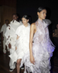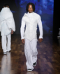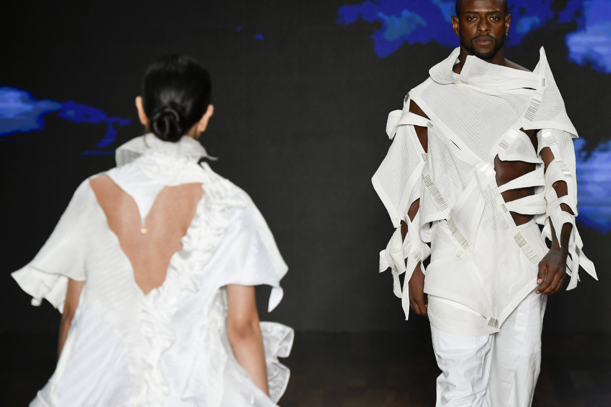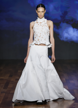 Lino Villaventura abriu o desfile dessa edição do SPFWN59 com uma série de looks brancos. Não é a primeira vez que usa esse recurso que valoriza ainda mais seu trabalho de design, com cortes & recortes, nervuras e armações. O seu desfile todo branco foi um marco dos anos 2000 na história de 30 anos do SPFW, lembra? A novidade dessa vez foram bordados com pérolas e acabamento rústico nos tecidos como o colete tipo tweed com barra desfiada.